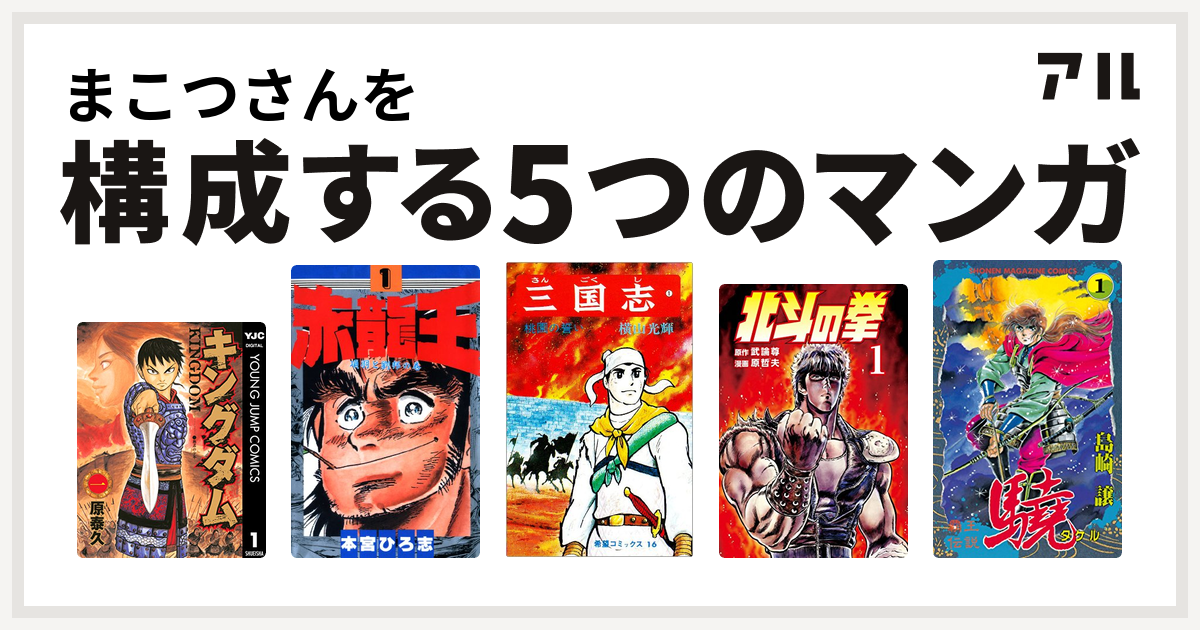 まこつさんを構成するマンガはキングダム 赤龍王 三国志 北斗の拳 覇王伝説 驍 私を構成する5つのマンガ アル